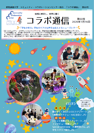 「コラボ通信」とは、スチューデントアシスタント(学生スタッフ)が、在学生にむけ 「CCCをもっと活用してほしい!」という思いで、毎年1回作成・発行されるニューズレターです。